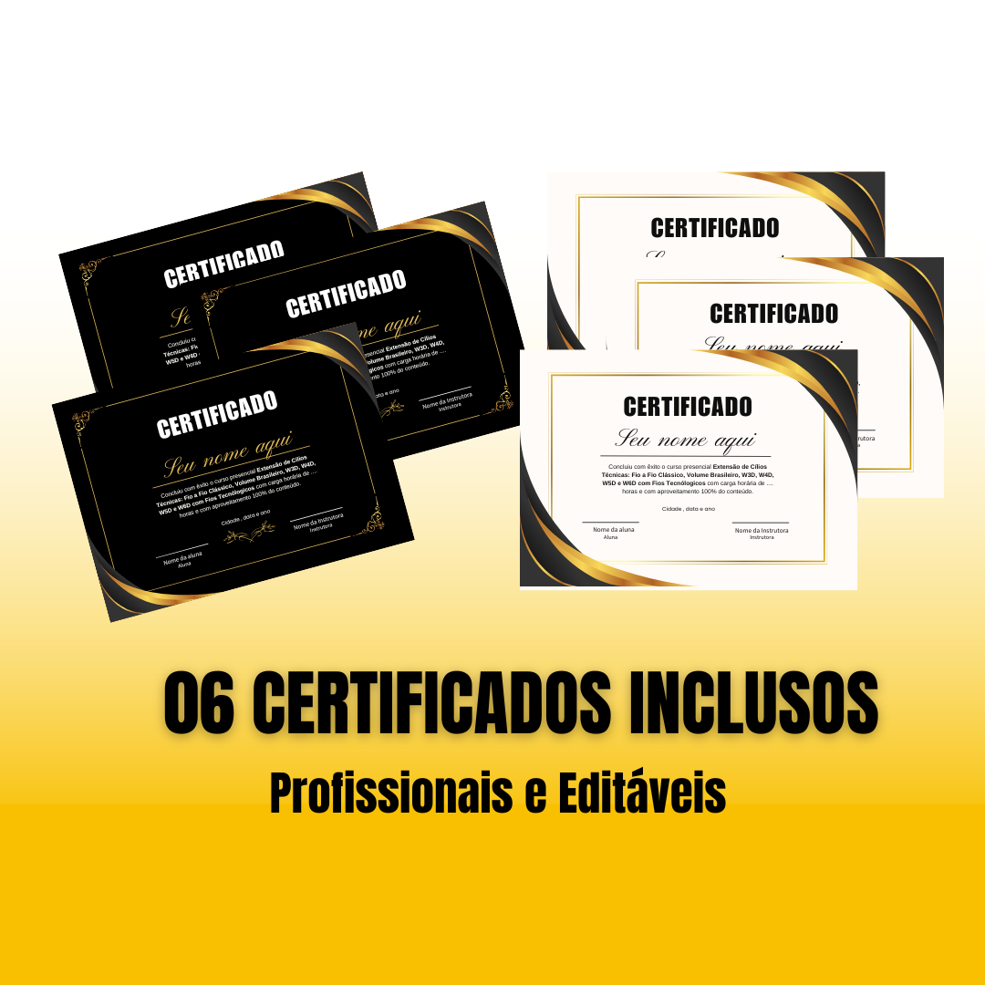 Você receberá 6 certificados profissionais totalmente editáveis, prontos para imprimir ou personalizar com seu nome — ideais para mostrar credibilidade, fortalecer seu portfólio e atrair mais clientes desde o início.